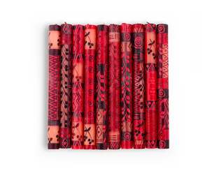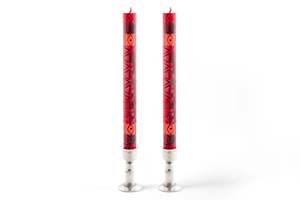 These hand-poured and hand-painted taper candles add a decorative element to tablescapes. Crafted from high-quality natural paraffin wax, they feature a 100% cotton wick. The unscented, smokeless burn provides a clean aesthetic. Each pair is uniquely made, with variations in the painted patterns reflecting the artisanal process. These candles are produced in South Africa by single mothers from the local rural community. Unscented and smokeless for a clean burn. Hand-painted patterns ensure each candle is unique. Crafted from natural paraffin wax with a cotton wick.