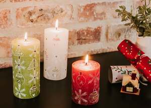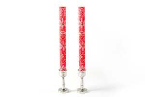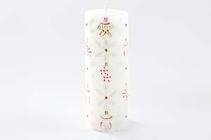 These decorative candles are hand-poured and hand-painted with festive motifs. Crafted from natural paraffin wax, they feature 100% cotton wicks for a clean burn. Each candle is unscented and smokeless, free from added toxins. The tapers are packaged as a matched pair. Due to the handmade nature, each candle is unique and may vary slightly from the product image while remaining consistent with the collectsion's theme. These candles are produced in South Africa by single mothers from the local rural community, supporting extended families. FEATURE BULLETS: Hand-poured and hand-painted in South Africa. Made from natural paraffin wax with a 100% cotton wick. Unscented, smokeless, and free from added toxins. Tapers are packaged as a matched pair.