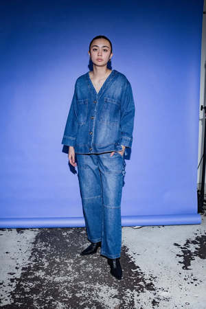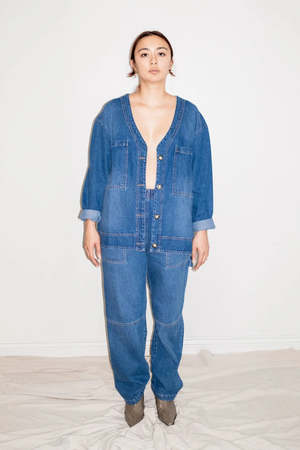 An oversized denim cardigan from et Tigre with front pockets. Boxy fit with dropped shoulders. Fit | Slightly oversized, go with your true size for a relaxed fit. Model is wearing size XS/S. She is 5'6" with a 28 waist. Composition | 100% Cotton Care | Wash sparingly with like colours. Machine wash in cold water, line dry. Made responsibly in small quantities.