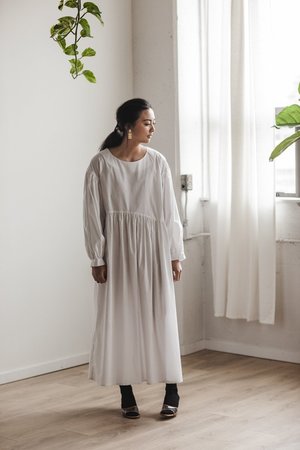 The Jayme dress by L.A. brand ET TIGRE is an oversized, easy-fit, above the ankle maxi length silhouette. Curved waist and billowed sleeves, it's so flattering on all body types and the perfect wafty dress to wear with your sandals. This fabric is 100% cotton. Made in Los Angeles Colour: White Material + Care: 100% Cotton. Wash on a low temperature or hand wash. Hang dry. Size + Fit: XS/S - UK8/UK10 Measurements: Chest: 40" / Hips: 21" / Hem: 44" / Length: 51" M/L - UK12/UK14 Measurements: Chest: 43" / Hips: 23" / Hem: 46" / Length: 51 1/2" ET TIGRE Thoughtful clothing made in L.A. by ET TIGRE. A California based label championing ethical practices and manufacturing in the fashion industry. The brand promotes slow fashion by focusing on producing well made, versatile pieces that are easy to wear again and again.