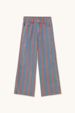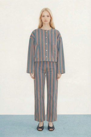 Denim pants in a medium wash with printed stripes and a washed effect. Features the classic Berta silhouette with a button and zip fly closure and a five-pocket design for a timeless, versatile fit. Available with the matching denim jacket for a coordinated look. 100% Cotton. Made in Portugal.