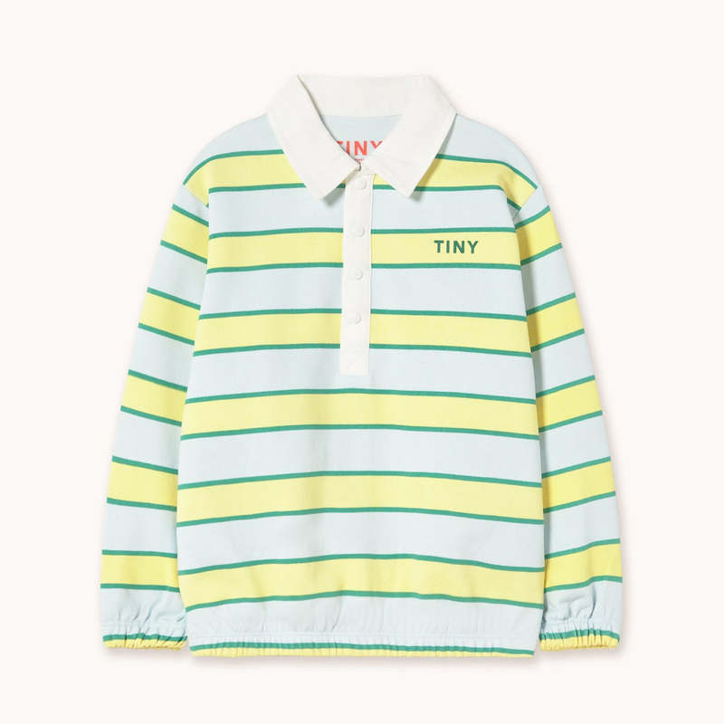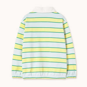 DETAILS - Ice Blue - Relaxed fit - Collared with snap closures - Elasticized hem & cuffs - 100% Organic cotton STYLE NOTES - Fits true to size - The Retro Stripes Polo Sweatshirt is crafted from 100% organic cotton. It features a relaxed silhouette with a collared neckline and snap closures.