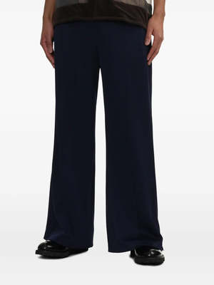 Navy Toga Virilis Track Pant with elasticated drawstring waistband, two side zip-fastening pockets, and wide leg. Made of 100% Polyester. Store ID: TV251-JF333. Wash Cold.