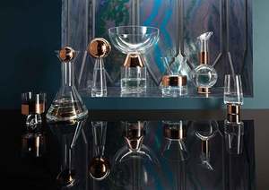 TANK highball is made from mouth-blown clear glass ornamented with hand-painted copper detailing. A heavy and generously proportioned object with our logo2 sand-blasted on the base. Especially designed for long-drinks, perfect for G&T and long cocktails. Presented in gift-packaging, sold in pairs. 6.5" high, 3.1" diameter Made in Poland