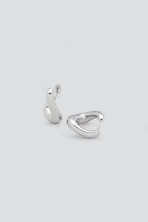 Silver Twist Hoops from Tom Wood. Latch closure twisted minimalist design earrings sold as a pair. White rhodium-plated / 925 sterling silver. Made in Thailand. Length: 0.5" / Depth: 0.2" / Height: 1".
