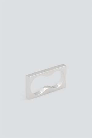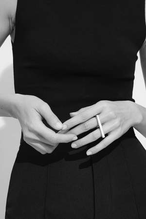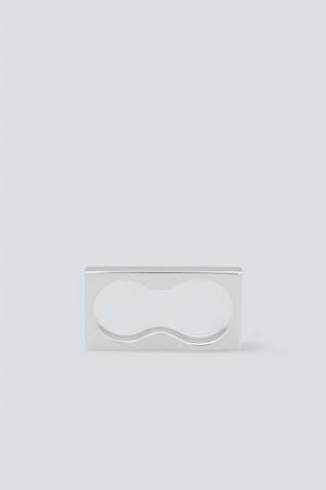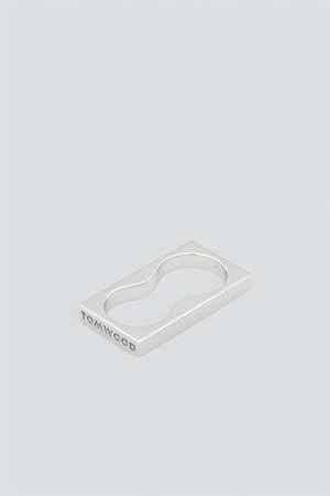 Silver Square Double Ring from Tom Wood. Based on the raw and honest concept of brutalism, the ring holds a minimal and graphical expression with the Tom Wood logo2 visible on one side of the ring. The ring is designed to match two fingers. - White rhodium plated / 925 sterling silver - Band width: 5.5mm