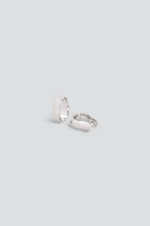 Silver Small Oyster Hoops from Tom Wood. These polished earrings are inspired by oceanic life and wrap around the ear with gently curved lines for a comfortable fit. All products are made with 100% recycled materials. - White rhodium plated / 925 sterling silver - Made in Thailand - Length: .55" / depth: .23" / height: .67"