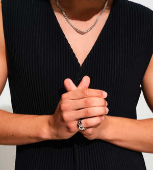 The Dean Ring is a reinvented classic, adding a magnified expression to the original curb link. Five silver links intertwine on a polished shank, creating textural dimension and elevated comfort. The middle link is individually cast adding movement to the ring. Made with 925 sterling silver in a polished white rhodium plating. All metals are 100% recycled. Material: 925 Sterling Silver Made in Thailand. Title tag Tom Wood - Dean Ring Silver Description tag The Dean Ring is a reinvented classic, adding a magnified expression to the original curb link. Five silver links intertwine on a polished shank, creating textural dimension and elevated comfort. The middle link is individually cast adding movement to the ring.