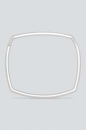 The Silver Frame Collar from Tom Wood is a statement piece designed to sit naturally around the neck with a smooth and structured fit. The collar is handmade and features an integrated button release clasp, with the cushion shape as the centerpiece of the design. - Recycled 925 sterling silver / rhodium plated - Inner diameter: 11 x 12 cm