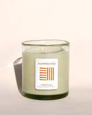 The Illumination Natural Candle is hand-poured with a blend of lemongrass and citrus essential oils in a uniquely crafted, hand-blown glass vessel. This soy wax candle provides a bright, uplifting aroma for your home.