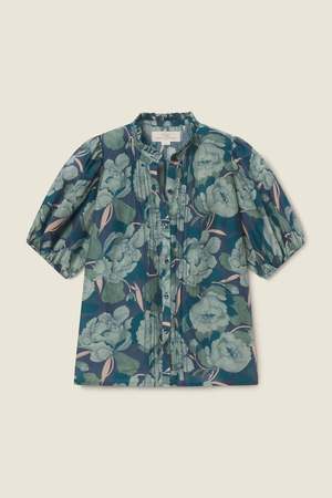 The Mira Blouse is a short puff-sleeve blouse with a flattering straight hemline and petite pintucks that lend texture and handcrafted charm. The slightly cropped length keeps this blouse airy and whimsical. Shown here in Hushed Shadow and made from our cotton-silk blend. DESIGNER ID: PS26-W1544-08 Color: Hushed Meadow Composition: 70% Cotton, 30% Silk Care: Machine wash cold. Fit: Runs true to size. - Breathable and meant for summer-time light layers - Designed with a lived-in feel - Classic details that will last generations - Easy to dress up or dress down Imported.