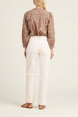 The Clara Blouse is a button-front update to our favorite Bailey Blouse with billowy shoulder gathers, a clean standing collar, and bracelet-length buttoned sleeves. It includes our signature back detail with a gathered waist tab. Shown here in Marigold Mistral and made from our cotton voile. - Designed with a lived-in feel, so it is not too precious - Classic details that will last generations - Easy to dress up or dress down - Made from our cotton voile Fit: - Skimming or loose depending on preference - Model is 59, wearing a size S Fabric: - 100% cotton voile - Breathable and meant for summertime light layers - All Trovata fabrics are designed in California.