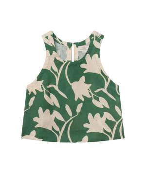 Designed with a lived-in feel, so it is not too precious. Classic details that will last generations. Easy to dress up or dress down. Made from our linen. The Esther is our new summer tank, slightly cropped with a rounded neckline and buttoned back closure. Modern yet classic with cleanly finished hems, bust darts, and a seamless construction throughout. Shown here in Madalena Floral and made from our linen. Skimming or loose depending on preference. Model is 57, wearing a size S.