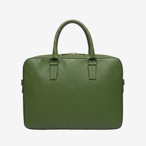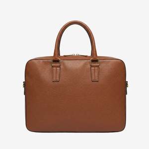 Chet Slim Brief Bag The Chet is a slim leather briefcase for those who move through the workday with quiet confidence. Structured but not rigid, polished but not loud, it carries what matters without carrying excess. Slide your laptop securely into the padded back compartment. Tuck your tablet, adapters, and daily tools into the interior front pockets. Store valuables safely in the interior zipper pocket. The main compartment leaves room for a notebook, a book for the commute, or a light wardrobe change. Crafted in durable pebble grain leather by skilled artisans in India, the Chet is built to age beautifully. Over time, it softens slightly, holds its shape, and becomes familiar in your hand. Not just a work bag a piece that moves with you through meetings, milestones, and years of use. Professional, simplified. Chosen once. Carried for years. Details 15"L x 11"H x 2.5" Italian pebble grain leather Non-fray nylon lining with nickel hardware Two-way zipper and inside zipper pocket 4 slide pockets on inside front wall Detachable shoulder strap and dust bag included Style #LB-9906.