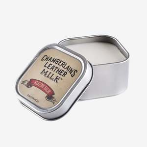 Healing Balm Concocted from the finest, most meticulously selected ingredients, ranging from cosmetic grade adhesives to deeply conditioning oils and waxes, Chamberlain's new Leather Milk Healing Balm may be the most intense leather healing remedy on the market yet. Unlike ordinary conditioners, Healing Balm is made especially for aesthetic work, designed for detail and touch up work for leather that's seen better days. Whether your leather is plagued by scratches, scars, light cracks in the hide, or is just really, really thirsty, Healing Balm will milk it back from its rut with form. Carefully optimized to preserve glossy and shiny finishes, this all-natural, curating potion will enrich the color and vibrancy of your leather, and beautify for years to come. Not for use on suede or other extremely soft leathers. Includes our Premium Fine Pore Scrubbings Absorption Sponge for the perfect application.