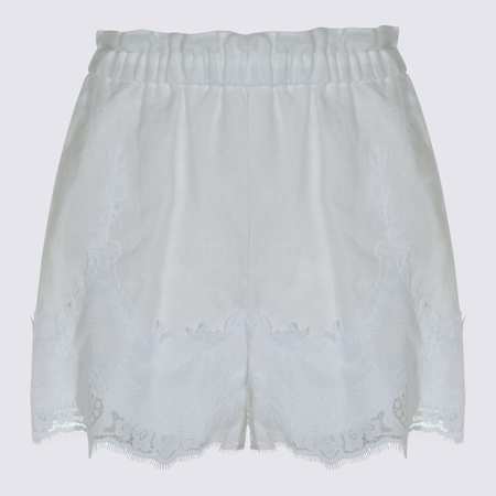 The Milano pants from Twinset are crafted from stretch viscose and detailed with mother-of-pearl buttons at the high waist. They feature a side zip with hook-and-eye fastening, welt back pockets, a pressed front crease, and an ample wide-leg silhouette, making them suitable from office wear to dressier occasions. Color: Blue Light. Model is 178 cm and wears size 40 (XS). Materials: 68% viscose, 28% polyamide, 4% elastane. Lining: 100% polyester. Care: Hand wash at room temperature or dry clean with hydrocarbons (delicate process).