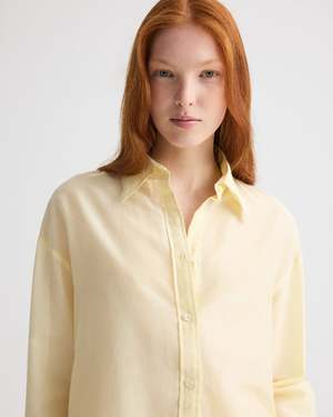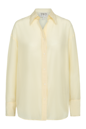 The Big Joe Shirt by TWP is an oversized, menswear-inspired relaxed button-down crafted in cotton silk organza. The fabric is a lightweight, sheer silk cotton blend in a plain weave organza. The shirt is complete with a chest patch pocket, button-up placket, French cuffs, and a tulip hem. Composition: 70% Cotton, 30% Silk Color: Flan