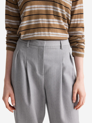 TWP's Fulton Street is a tailored trouser in compact wool suiting. The fabric is crafted from 100% high-twist worsted virgin wool, compact yet fluid. The Fulton Street Pant has a mid-rise waist and a straight, slightly tapered leg, designed with front pleats, side pockets, and a clean waistband. Product Details Designer ID: 2806W766 Color: Light Heather Grey Composition: 100% Virgin Wool Made in USA