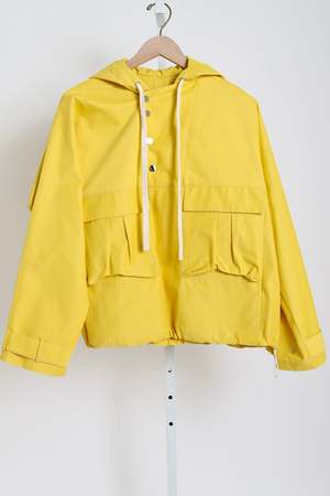 Rain Check is an outerwear jacket made from 58% cotton, 38% polyester, and 4% polyurethane.