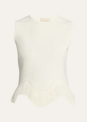 The Koa Top is spun from Ulla Johnson's signature plush knit with hand-cut fringe along the hemline that adds an artisanal touch. Arriving in perennial black, this top has a slim fit that easily coordinates with denim and tailoring. Plush fringe knit Designed for a slim fit Round neckline Sleeveless Pullover style Composition: 83% viscose, 17% polyester