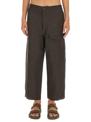 Regular fit pants crafted from 66% linen, 27% wool, and 7% polyamide. Made in Italy. The model is 185 cm tall and wears size L.