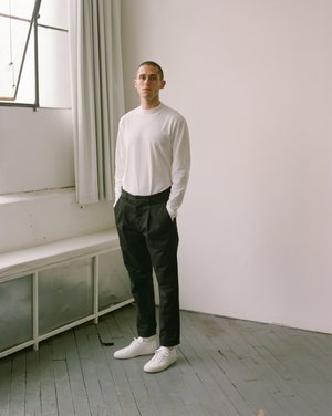 The Davis breathes life back into the single pleated chino. It's high rise transitions to a comfortable thigh and tapered leg flawlessly. Back flap pockets round things out to make for an incredible combination. - Made in Portugal - 100% Cotton - Fabric from Italy - Machine wash cold, tumble dry low - 34 inch inseam measurement on all sizes - Model is 6'2", 162 lbs and wearing sizing 32