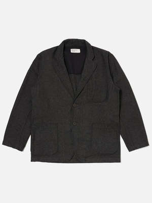 The Two Button Jacket from Universal Works is a modern, relaxed fit blazer with subtle shaping for a refined silhouette. It features a longer, slightly wider lapel and a two-button closure for a contemporary look. Featuring two lower patch pockets, one chest patch pocket and a half lined back. - 46% Polyester, 36% Wool, 13% Acrylic, 4% Polyamide, 1% Viscose - Body lining: 100% Cotton - Sleeve lining: 100% Polyester - Two-button front - Long, wide lapel - Two-piece sleeve - Two lower patch pockets - One chest patch pocket - Half-lined back - Sleeve lining - Delicate wash at 30
