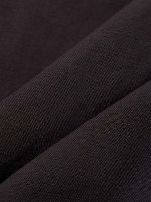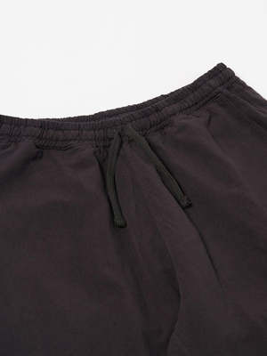 The Simple Shorts in Licorice from Universal Works are above-the-knee shorts with an elasticated and drawstring waist. Taping on the rear pockets provides added strength. A plain weave in a blend of cotton, linen, and lyocell is garment-dyed for a washed, relaxed look. This fabric has a smooth, dry hand feel with some fluidity. - Lyo linen mix - Knee length - Two front pockets - Drawstring waist - Hanging loop on waistband - Two back pockets - No fly