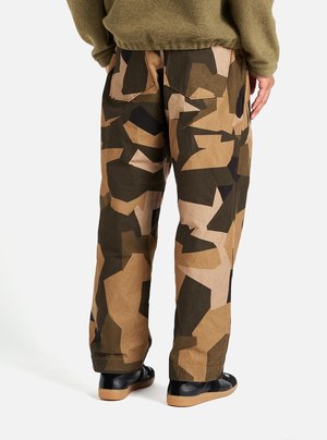 A wide legged pant with slight taper. Single pleat front, fixed waist band & two rear back pockets. Wide leg. Slight taper. Single pleat front. Two rear patch pockets. Two front hand pockets with internal ticket pocket. Button fly. Product code: 31148B 100% Cotton; Trim: 65% Recycled Polyester, 35% Cotton Made in India
