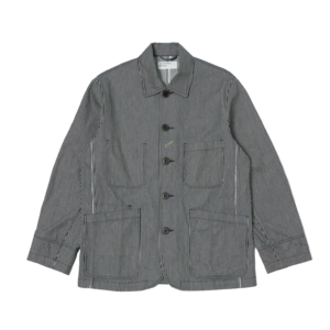 The Original Baker's Jacket by Universal Works features a regular fit with a single rear vent, front, back, and side panels, and decorative top stitching. It includes two lower patch pockets, one chest patch pocket, and one internal pocket.