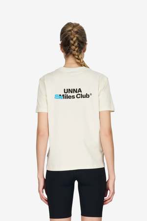 Women's long sleeve raglan T-shirt in Vanilla White with a regular fit and brushed finish. Features thumb holes on sleeves. Made from a blend of 50% GOTS Cotton and 50% Recycled Cotton. UNNA logo2 on the front and UNNA Smiles Club print on the back.