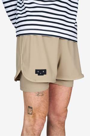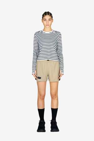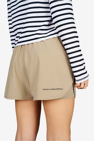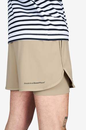 Unisex running shorts featuring an inner lining and side vents. The 3-inch Flow Shorts offer a soft stretch and are made from ECONYL. Podium logo2 on the front and a reflective "Finish in a Good Place" slogan on the back. Includes one pocket in the inner lining and a hidden pocket at the back. Also available in a 5-inch length.