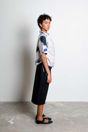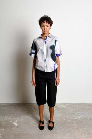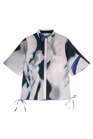 The Ties Top is crafted from crisp 100% cotton poplin and features Untitled in Motions custom Shadow Iris Ivory print, an oversized photographic floral. Designed as a short-sleeve button-down with adjustable side ties, it can be worn loose or cinched for versatile, elevated styling. Shadow Iris Ivory is a custom photographic oversized floral print inspired by the transition from night to morning. - Glaimi is 5'9" and wears a size Small - Fits true to size - Custom Shadow Iris Ivory print, an oversized photographic floral - Eco dry clean recommended - 100% cotton poplin - Vegan - Biodegradable Crafted from breathable, lightweight 100% cotton poplin with a clean, structured finish. Durable yet soft to the touch, it holds its shape beautifully while allowing ease of movement, making it ideal for polished, everyday silhouettes.