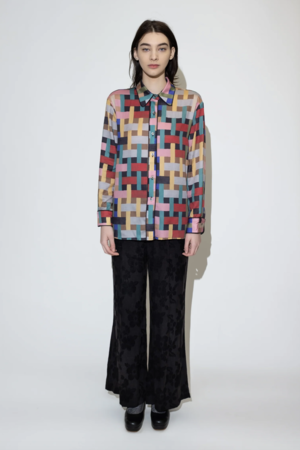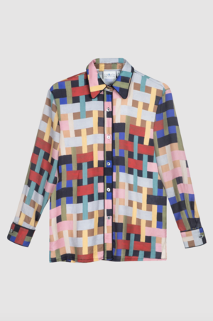The Manifest top is the perfect relaxed long-sleeve button down crafted from breathable TENCEL. Featuring UIM custom artwork Weave, it has a relaxed shoulder, and piping at the button placket and cuffs. Slightly oversized fit. Front button placket. Slightly longer length at back. Piping at button placket and cuffs. Side vents. French seams 63% TENCEL Luxe / 37% TENCEL This product was created using Certified Sustainable Materials