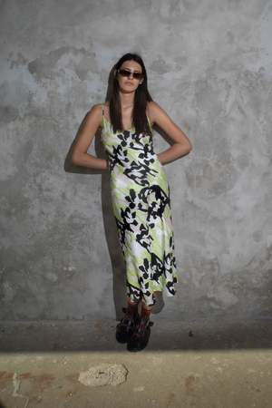 The Desire Slip is cut on bias with round neckline and adjustable thin straps. Easy scoop at back neckline. Dress skims the body and has an easy fit. Skirt flares slightly and hits just above the ankle. Crafted from breathable TENCEL Luxe with silky twill finish, in custom artwork print Iris. - Fits true to size - Marta is 59 and wears size Small. - Adjustable straps - French seams - Machine wash cold with like colors - 61% TENCEL Lyocell Luxe / 39% TENCEL Lyocell - Vegan - Biodegradable Made from breathable TENCEL Luxe, an innovative fabric produced from sustainable wood sources, harvested from certified and controlled sources and processed in a closed loop system to reduce water waste and toxicity. TENCEL Luxe has an extravagant, luxurious drape and is considered a superior and more durable alternative to silk.