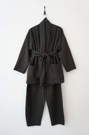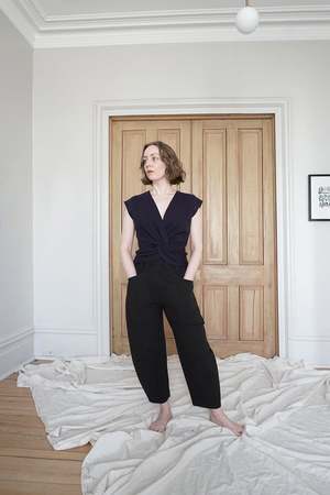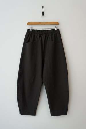 Pants to wear in the garden. The Flor Arca pants have an elastic waistband and curved side seam for a subtle balloon fit. Featuring front seaming details and pockets, these cotton pants have a high rise and slightly cropped length. Also available in Spun Flax, Chestnut, Olive and Navy Fit: True to size, see garment measurements below. Erica is 5'8", regular pant size medium/8 and wears the medium. 100% Cotton Made in Montral, Canada Hand wash in cold water or machine wash cold, delicate cycle. Hang to dry (do not tumble dry) Size XS S M L XL Waistband Unstretched 26" 28" 30" 33" 36" Waistband Stretched 32" 34" 36" 39" 41" Hips 39-41" 41-43" 43-45" 45-48" 48-51" Rise 14.5" 14.5" 14.75" 15" 15.5" Inseam 24.75" 24.75" 24.75" 25" 25.5"