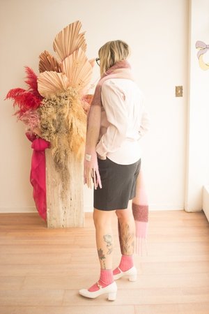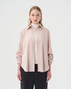 Valerie C's Oversized Shirt is a loose-fitting button-up collared shirt constructed from 100% Tencel fabric. It features elastic cuffs to allow for easy rolling up and down of the sleeves. The fabric is breathable, soft, and a perfect addition to any capsule wardrobe. Sizing Notes: This shirt fits true to size and is meant to have a relaxed oversized fit. We recommend ordering your usual size. Please see size chart for measurements. Model is wearing size S. 100% Tencel (OEKO-Tex Certified). Tencel is breathable, durable, and incredibly soft to the touch. Like lyocell, it comes from the pulp of trees, making it a natural fibre with a chemical transformation. It does not require pesticides or insecticides to grow and it washes easily in cold water. The TENCEL brand manufacturing process is powered by 100% renewable energy and uses significantly less water. Care: Hand wash with like colors. Do not tumble dry. Hang to dry. Iron at low temperature if needed. Do not use bleach. Can be dry cleaned. Made in Quebec.
