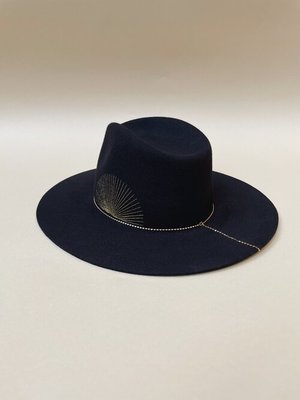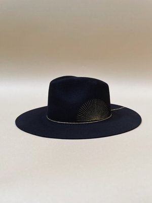 BASILE HAT - Wool felt hat - Gold plated jewelry - Sunrise embroidery - Black color - Made in France - Customized in Marseille - 100% Wool felt - 3.5 inches Width - 4 inches Height - Sold with size reducers - Water-repellent treatment