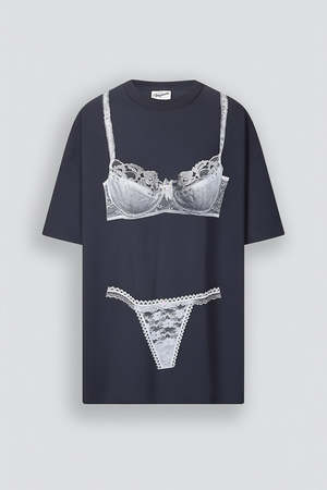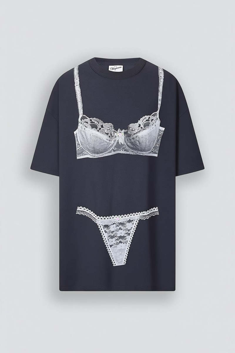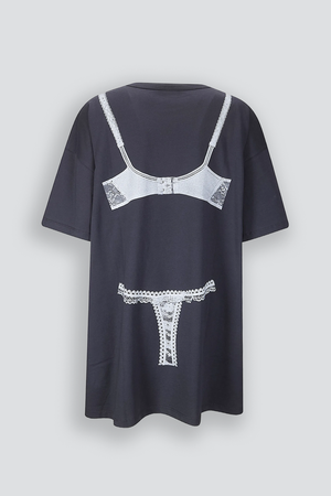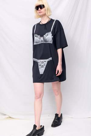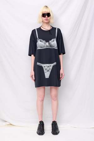 Washed Black Trompe L'oeil Tall Tee Knit Dress from Vaquera. Crewneck collar and trompe l'oeil bra and panty graphic printed on front and back. - 100% Cotton - Made in Turkey - Type: Dress