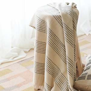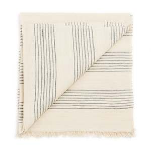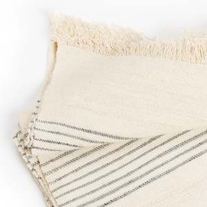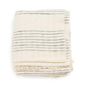 The Silica Chalk Throw by Variously is a modern take on combining stripes and checks in a serene color palette of dusty rose salmon and grays. Meticulously handwoven, each piece is 100% handmade, making it a unique and sustainable throw with classic and minimal modern appeal. Soft to touch and designed to wear well over time, this throw features high-quality craftsmanship and is reversible for versatile use. Short fringes add a modern look. Crafted from 100% soft merino from Nepal and 100% pure linen from Belgium, the throw uses eco-friendly Swiss dyes engineered to promote longevity. Each piece is unique due to its handmade nature. Throw Size: 110 cm x 210 cm Material: 100% soft merino from Nepal, 100% pure linen from Belgium. Colors: Off White and Gray Artisan base: Ethically and responsibly handwoven by artisans in Nepal. Wash care: Gently hand wash using gentle detergents. Hang dry in a cool shaded place or delicately dry clean only.