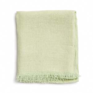 The Soya green linen scarf is an elegant piece that is easy to blend with most outfits. A classic gift or personal purchase for year-round wear, this hand woven scarf also supports artisans directly. Due to the raw texture of the plant-based linen yarn used, it has a beautiful translucent appeal. Each piece is dipped into earth-friendly dyes by hand, making this soft linen scarf a timeless unisex piece. Material: 100% linen Size: 90 x 200 cm (large drape) Color: Soya pastel green Artisan base: Ethically hand woven by artisans in India. Wash care: Gently hand wash with cold water, hang dry, or delicately dry clean only. What makes your purchase sustainable: - Azo-free dyes - Supports employment of women artisans - 100% handmade manufacturing process by artisans - Uses only 100% natural, biodegradable, responsibly sourced materials - Small batch production ensures higher quality and less wastage.