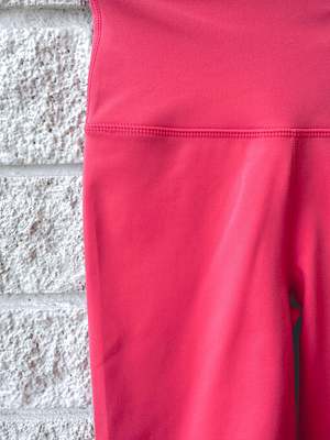 Buttery soft with light compression and minimal seams. Rolled waistband and tapered inseam panel. Moisture-wicking properties. 75% Polyester, 25% Elastane.