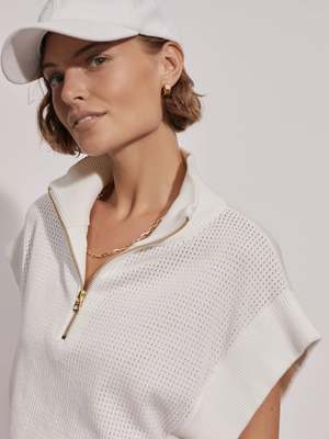 Crafted from a smooth textured knit, this cropped pullover features a high neck with half zip fastening and exaggerated grown-on shoulders with ribbed cuffs. Perfect for layering over lifestyle or Club looks. Fabric: 100% Cotton, 40% Viscose Model is wearing a size Small. Model Measurements: Height 5'9.5", Bust 31", Waist 24", Hips 34.5" Product Measurements (Size S): Side neck to side hem length is 50cm.