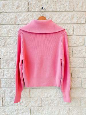 Crafted from a soft viscose yarn, this knit jacket features an all-over rib stitch, perfect for cool weather layering. Designed with a double-ended zip, a fold-back collar, and fashioned armhole trims for a refined finish.