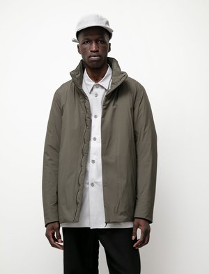 A minimal, lightweight cold weather jacket with a high collar and clean lines. With an outer made of GORE-TEX INFINIUM, this jacket blocks out wind and repels moisture, while remaining breathable on the move. Coreloft synthetic insulation provides ample warmth with minimal weight and bulk. Finished with taped seam construction, internal stretch-woven cuffs, two internal zipper pockets, and two exterior zipper pockets. - Made in China - 100% Nylon outer, 100% Polyester fill - Regular fit - Machine wash - James is 61, 145lbs and wears a size medium