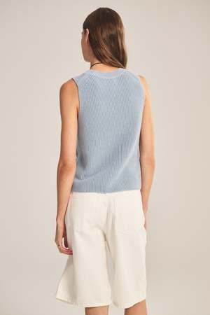 Crafted from textured cotton, this sweater vest features a crew neckline with ribbed details at the neckline and hem. The slightly cropped design adds a modern touch, making it a versatile layering piece for any season. - 100% Cotton - Ribbed trims