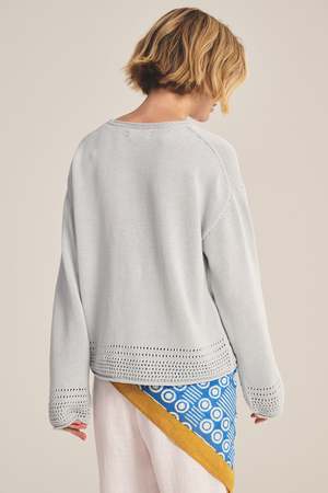 An everyday crew neck sweater featuring cutout detailing along the hem and sleeves. - 100% Pima Cotton
