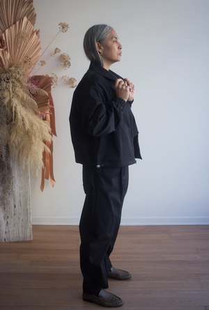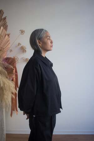 Designed for both style and comfort, the Claire Zip Up Shirt by Veri is the ideal choice for cool mornings and breezy afternoons. Featuring a relaxed but polished windbreaker fit, adjustable waistband, and elastic cuffs, it will quickly be your go-to piece for transitioning between seasons. Meticulously crafted from a cotton/nylon blend and sewn in Veri's Montral studio, the Claire is perfect for layering or wearing on its own. The breathable fabric and classic shirt collar is the perfect combination of sporty and chic. Daniel is 510 and is wearing size S/M, Yolanda is 59 wearing size S/M 74% Cotton, 26% Nylon (Fabric made in Italy) - Shirt collar. - Relaxed, windbreaker fit. - Zipper at the front. - Long sleeves. - 2 adjustable bungee cords on the side. Machine wash cold, delicate cycle, hang to dry and iron at medium temperature. Made in Montreal, QC