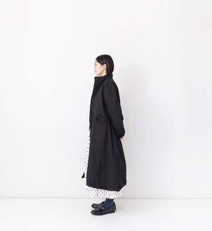 This long coat is made from thick, high-count cotton twill fabric. The garment dyeing creates subtle puckering for a casual look, while the natural dyeing process gives it a deep, rich color. It is constructed in two layers with a thin cotton lining and is naturally dyed using plant-based dyes such as logwood and bayberry. Fabric: 100% cotton. Made in Japan. Size (FREE) - Length: 116 cm - Chest width: 66 cm - Shoulder width: 49 cm - Sleeve length: 63 cm - Armhole: 58 cm - Cuff width: 17 cm - Hem width: 85 cm About Veritecoeur Veritecoeur is a Japanese brand based in Fukuoka, known for natural materials and creative, versatile layers that develop a softer texture and appearance with repeated washing.