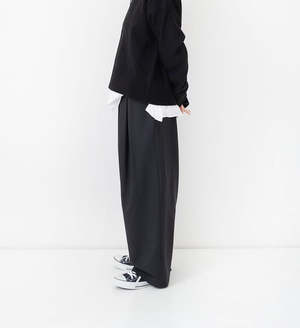 Crafted from premium worsted wool yarn sourced from Oshu's renowned wool region, these Veritecoeur pants deliver a refined, low-fuzz finish with exceptional smoothness. Designed with generous front pleats and a thoughtfully tapered profile, they offer ample room through the waist while maintaining a polished silhouette toward the hem. The elasticated waistband with drawstring ensures effortless comfort and adjustability throughout the day. Size 1 (approx.): - Waist (elastic + drawstring): 7086 cm - Rise: 36 cm - Inseam: 62.5 cm - Hip: 114 cm - Thigh width: 43 cm - Hem width: 25 cm About Veritecoeur Veritecoeur is a Japanese brand based in Fukuoka, Japan. Named from Latin for "true of heart," Veritecoeur is known for its natural materials and creative, versatile, comforting layers. As you wash the garments over time, they develop a softer texture and an even more pleasing appearance.